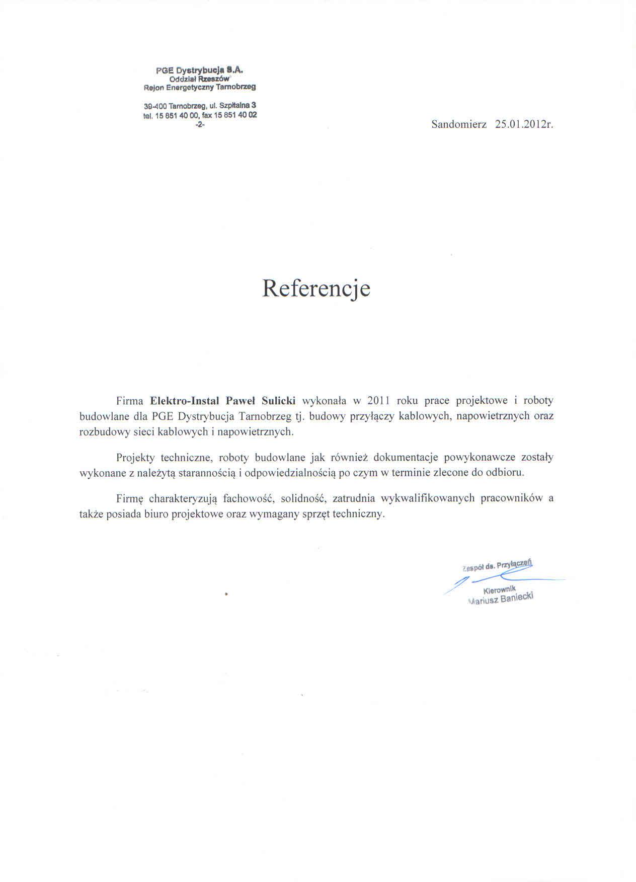 - PGE Dystrybucja S.A Rejon Energetyczny Tarnobrzeg