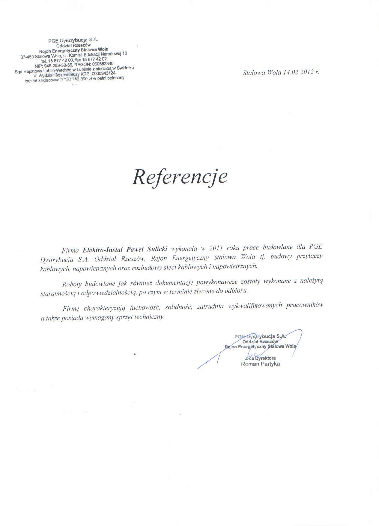 - PGE Dystrybucja S.A. Rejon Energetyczny Stalowa Wola