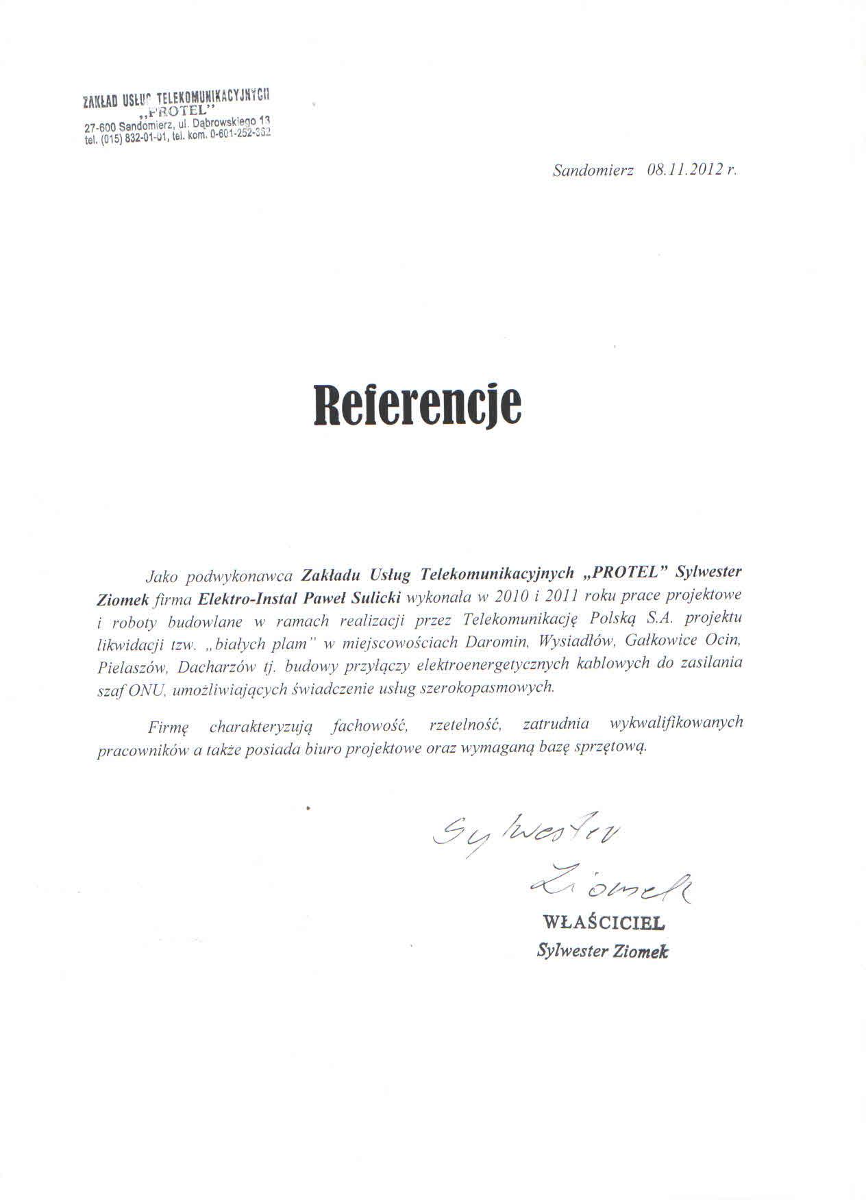- Zakład Usług Telekomunikacyjnych "PROTEL" Sandomierz